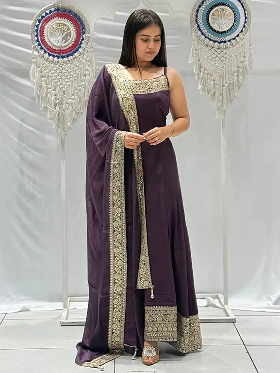 Purple Silk Long Blouse & Chaniya Set | Royal Wedding & Festive Wear