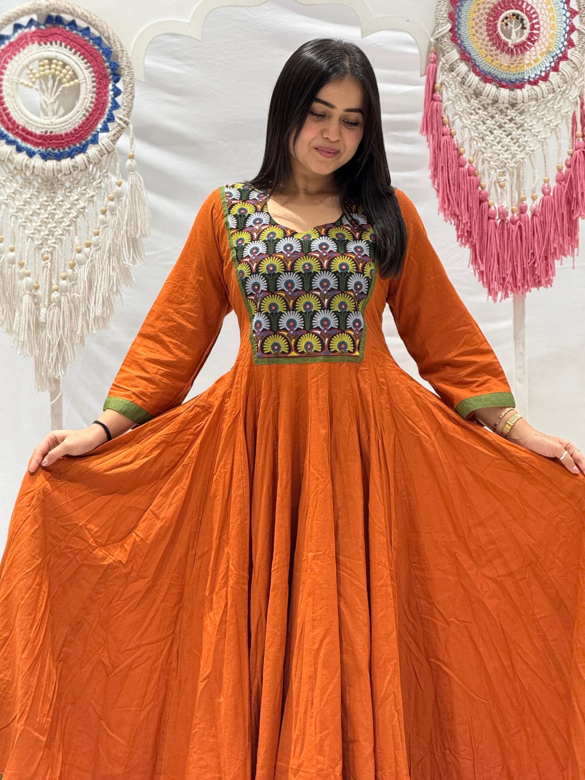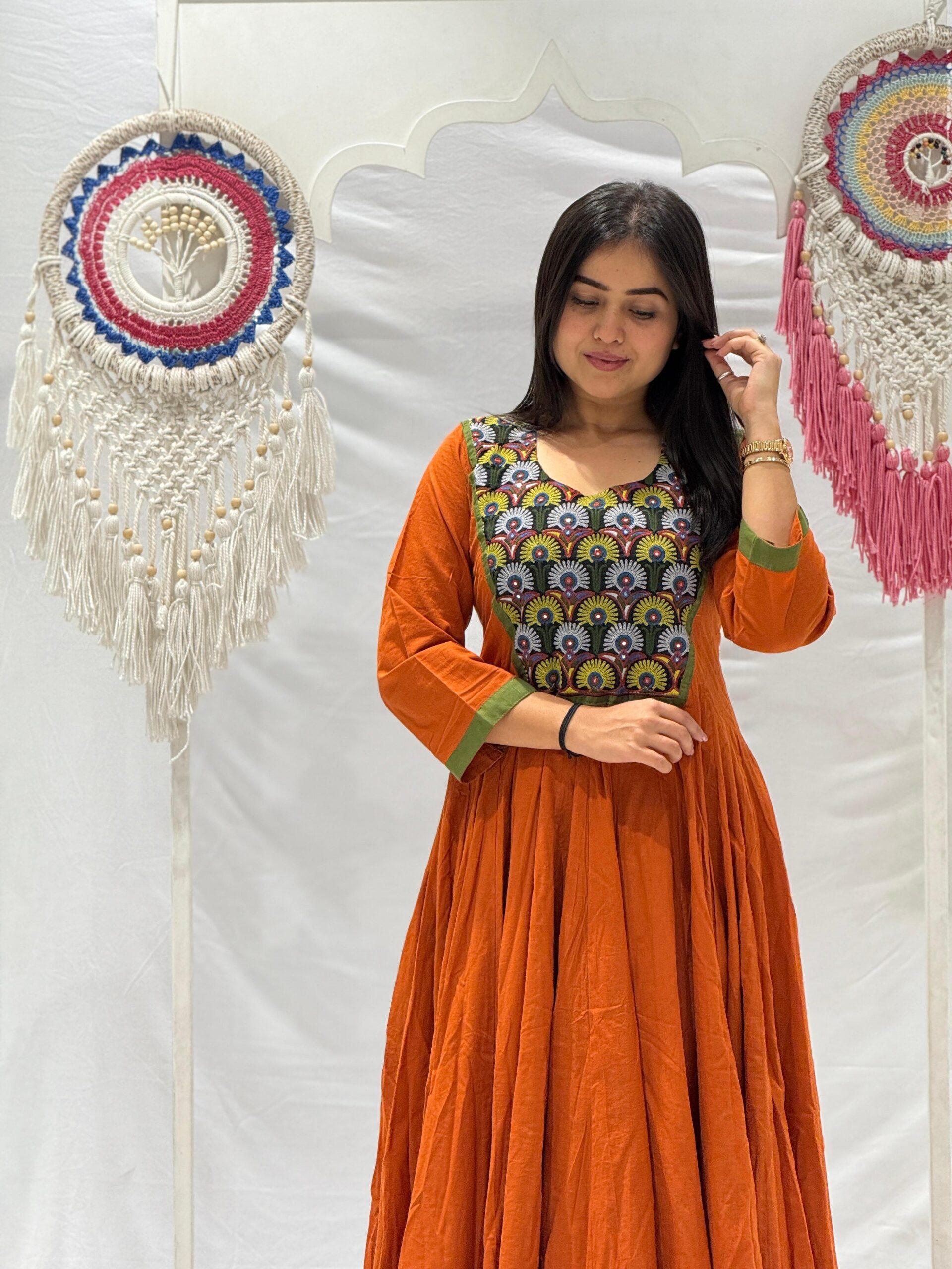 Cotton Kauchi Neck 32 Kali Gown | Jharokha
